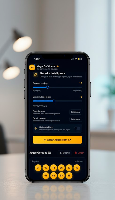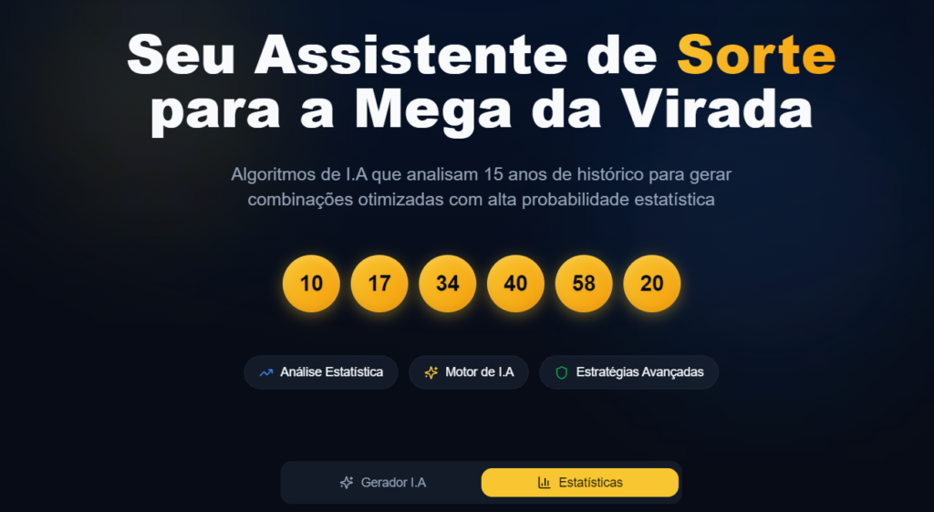 Ao adquirir qualquer cota, você garante ACESSO IMEDIATO à melhor Inteligência Artificial do Brasil para jogos da Mega-Sena da Virada — uma tecnologia avançada que analisa 15 anos de histórico, detecta padrões ocultos e entrega combinações otimizadas com altíssima probabilidade estatística.